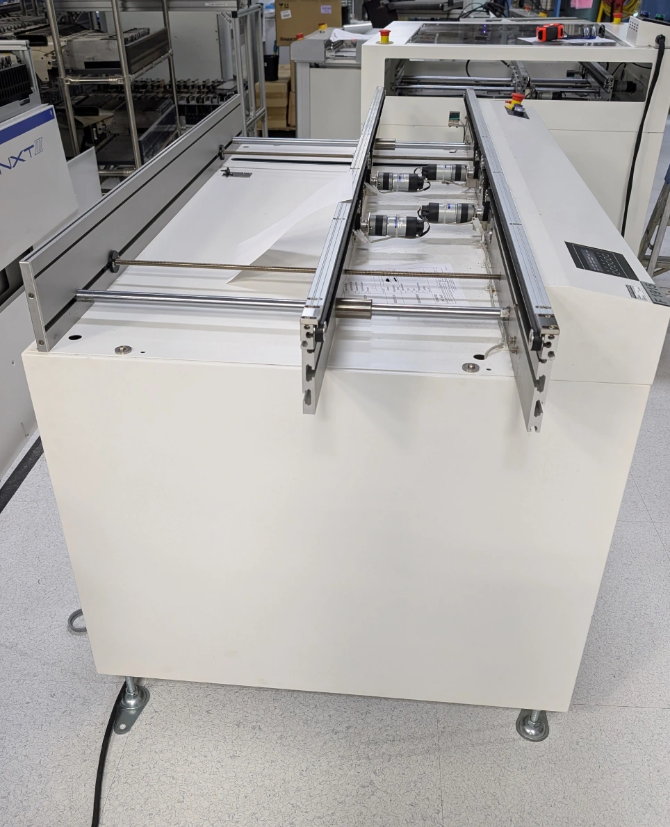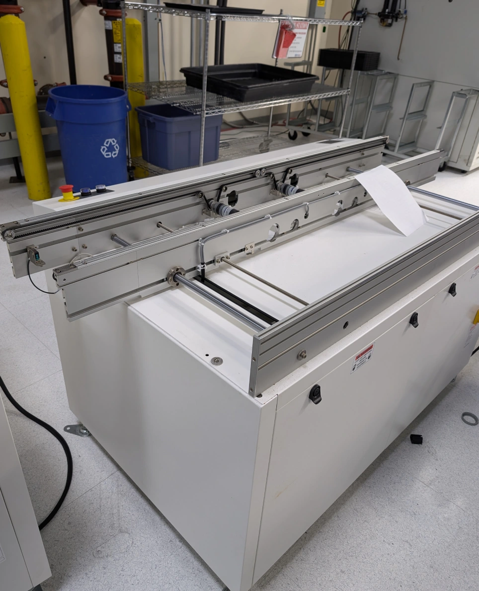 Flexlink 1-EB-1800-24W Make: Flexlink Model: 1-EB-1800-24W Vintage: 5-2020 Power: 120v, 10a, 50/60hz Description: Flexlink 1800mm(70.86”) 24W”, 2-stage Edge belt conveyor Flexlink 1-EB-1800-24W (4)Flexlink 1-EB-1800-24W (6)Flexlink 1-EB-1800-24W (3)Flexlink 1-EB-1800-24W (5)
