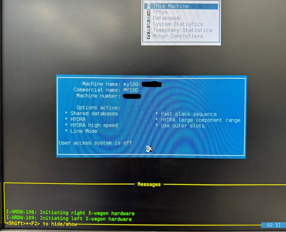 - Options: Shared databases, HYDRA, HYDRA high speed, Line mode, Fast place sequence, HYDRA large component range, Use outer slots